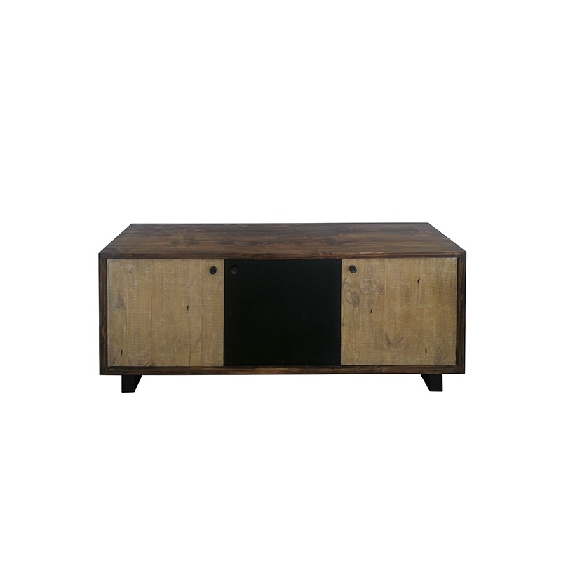 Bufetera estancia 3 puertas, diseñada con madera sólida de pino, puertas cepilladas, con detalles rústicos de madera avejentada.